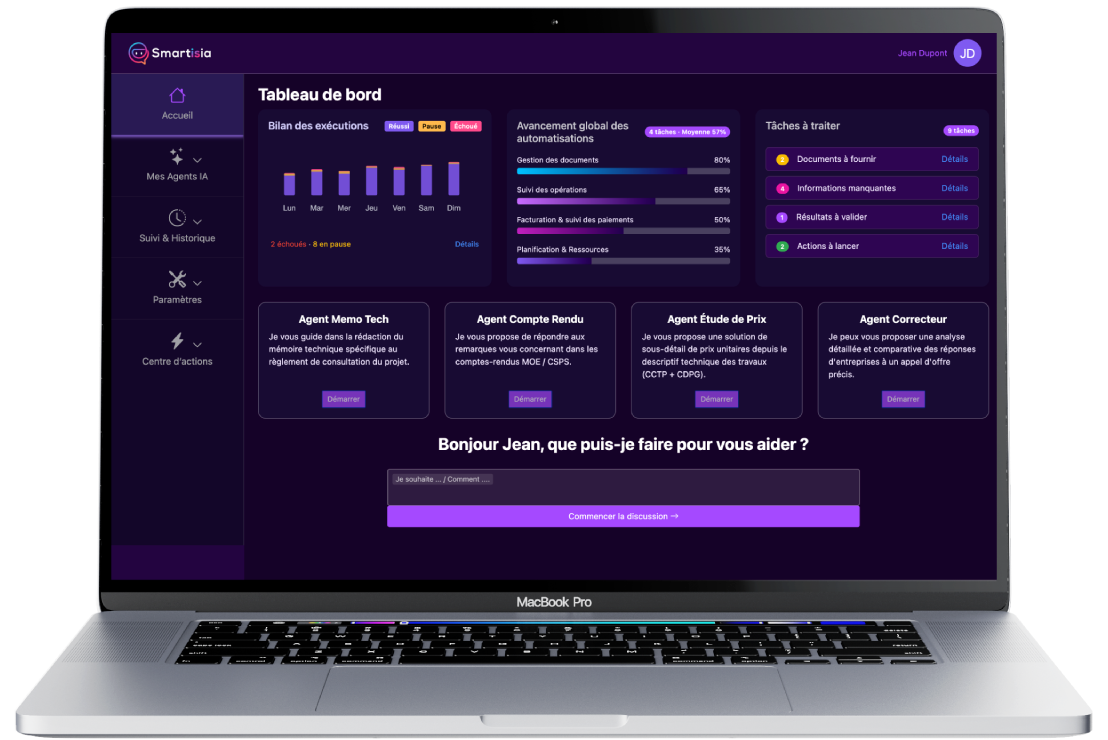 L’IA fiabilise les actions répétitives en supprimant les risques d’erreur humaine. Avec Smartisia, chaque étape clé est automatisée de façon rigoureuse grâce à des algorithmes conçus sur-mesure.